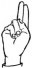На ћирилици написано СИМЕОН РАКЕЗИЋ састоји се из 13 слова [?]. Исписано ћириличном једноручном азбуком за глувонеме: